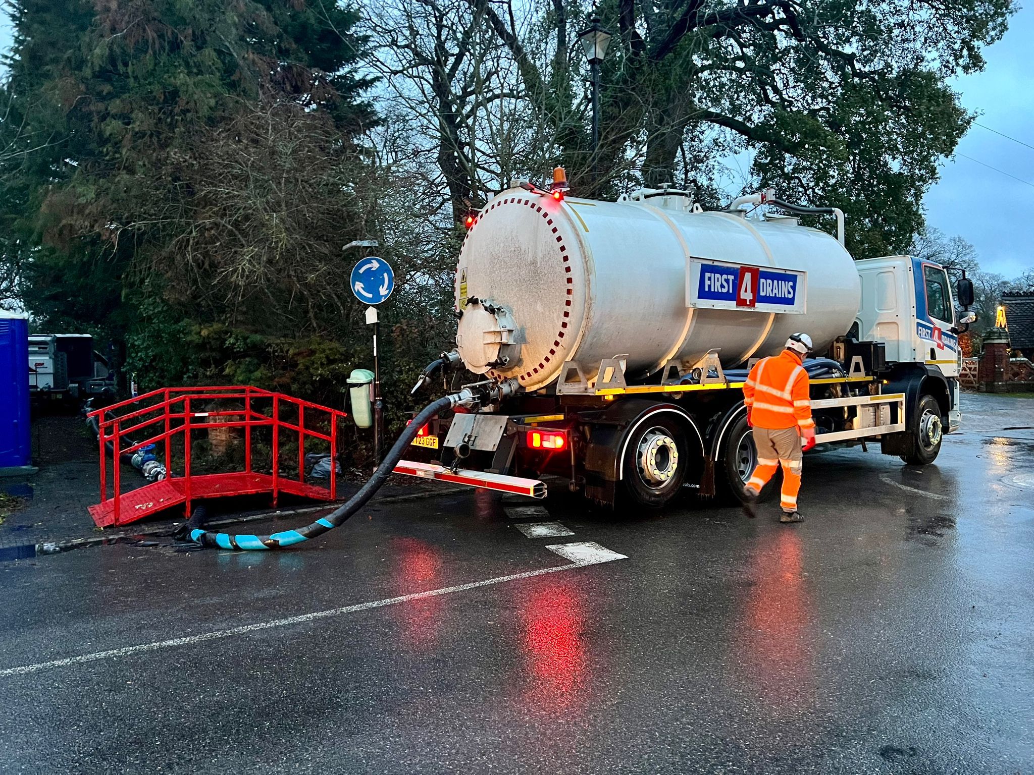 Traffic lights have been installed as Thames Water is conducting emergency network repairs near historic homes in a village in Berkshire.
